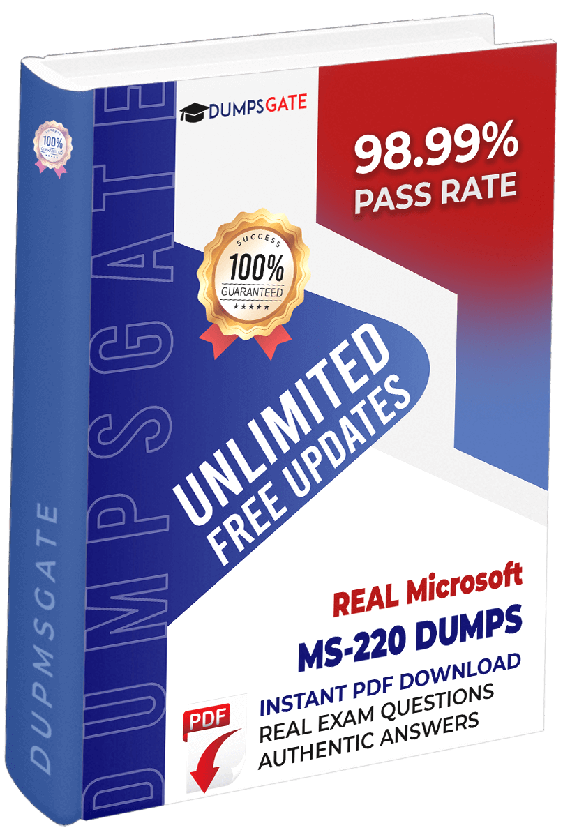 Dumpsgate provides the most authentic dumps at very low rates. I passed my MS-220 exam with the help of these dumps. The content within the dumps was up to the mark and the questions were explained in detail with very easy vocabulary. All of my queries were solved by preparing from these dumps I highly recommend this website.