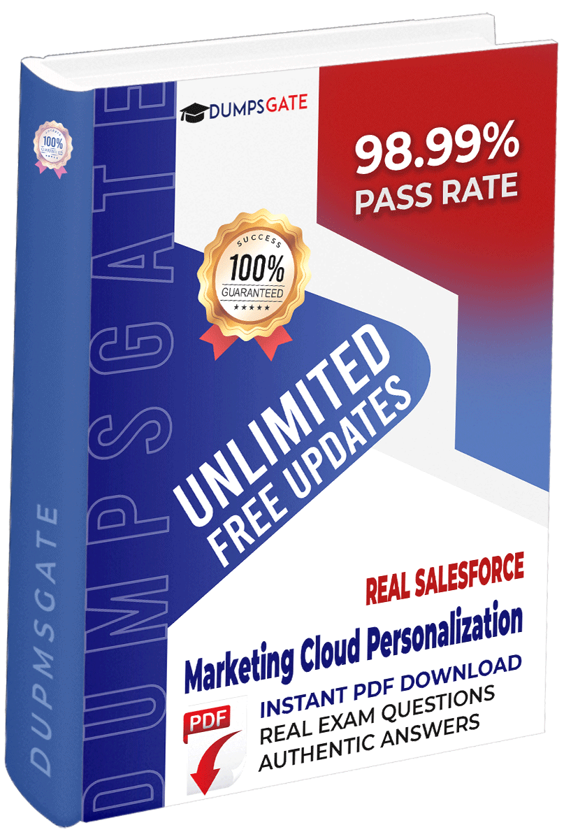 Are you a consultant with a proven track record in implementing and consulting on Real-Time personalization systems? Elevate your expertise with our Marketing Cloud Personalization Accredited Professional certification. Tailored for individuals adept at driving customer engagement through personalized experiences, this certification is your gateway to showcasing mastery in designing, configuring, building, and implementing Marketing Cloud Personalization solutions. Dumpsgate provides you with the most reliable and authentic practice dumps to qualify for the exam in a single attempt and prove your learning experience.